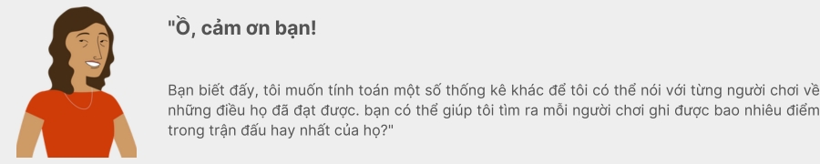 Bây giờ chúng ta cần trả lời câu hỏi này: Mỗi người chơi đã ghi được bao nhiêu điểm trong trận ghi điểm tốt nhất của họ?