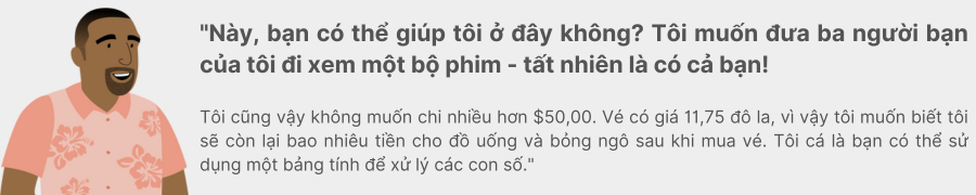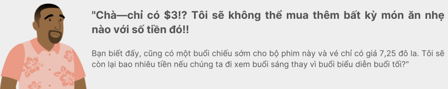 Vì vậy, nếu Darien mua 4 vé có giá thông thường, anh ấy sẽ còn lại $3,00 cho bỏng ngô và đồ uống.