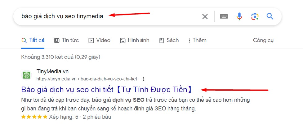 - Bước 1: Tìm từ khóa (ấn chữ copy bên dưới cho nhanh):báo giá dịch vụ seo tinymedia