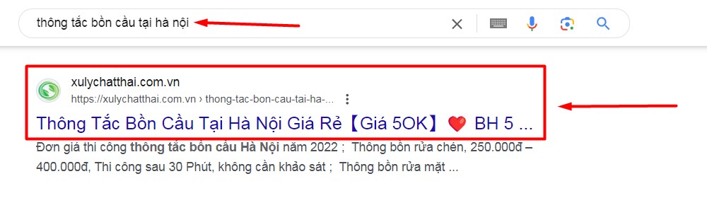 - Bước 1: Tìm từ khóa (ấn chữ copy bên dưới cho nhanh): thông tắc bồn cầu tại hà nội